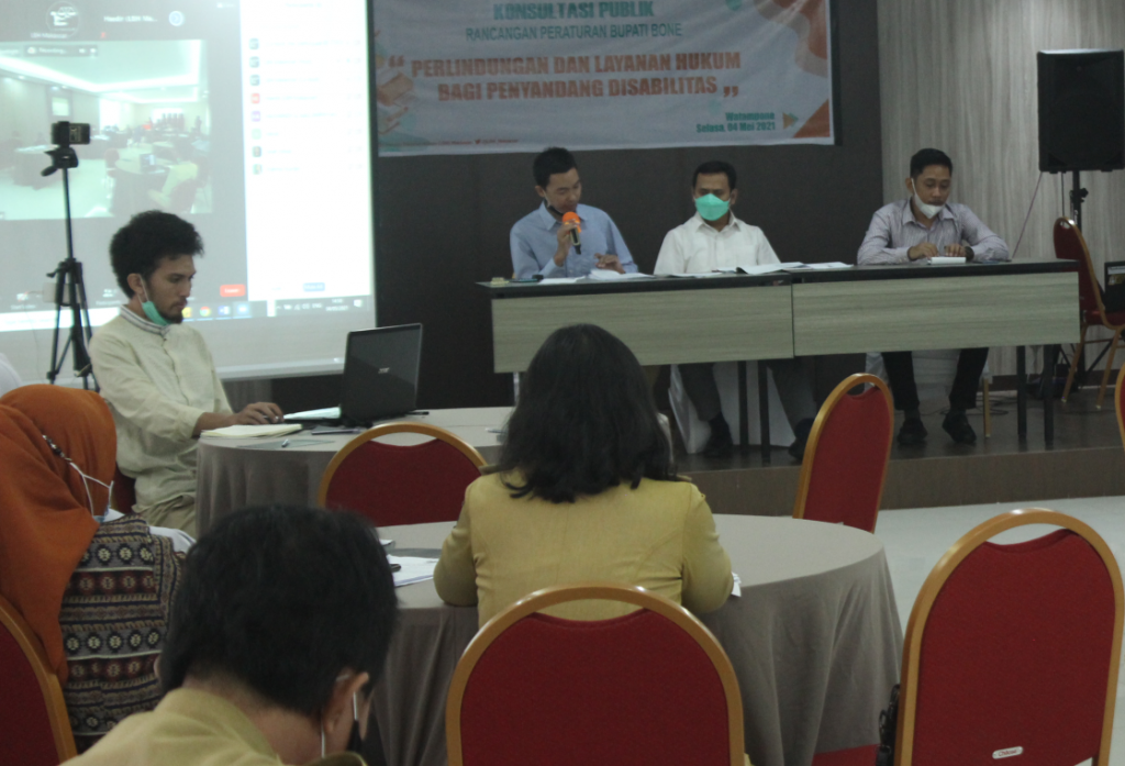 LBH Makassar bersama Konsorsium serta Dinas Sosial Kabupaten Bone melanjutakan tahapan pembentukan pembentukan Peraturan Bupati (Perbub) tentang Pendampingan dan Layanan Hukum bagi Penyandang Disabilitas Berhadapan dengan Hukum ke tahap konsultasi publik. Konsultasi Publik ini dilaksanakan di Kabupaten Bone, 04 Mei 2021 dengan metode hybrid (luring dan daring), yang dihadiri oleh Organisasi Perangkat Daerah (OPD), Organisasi […]