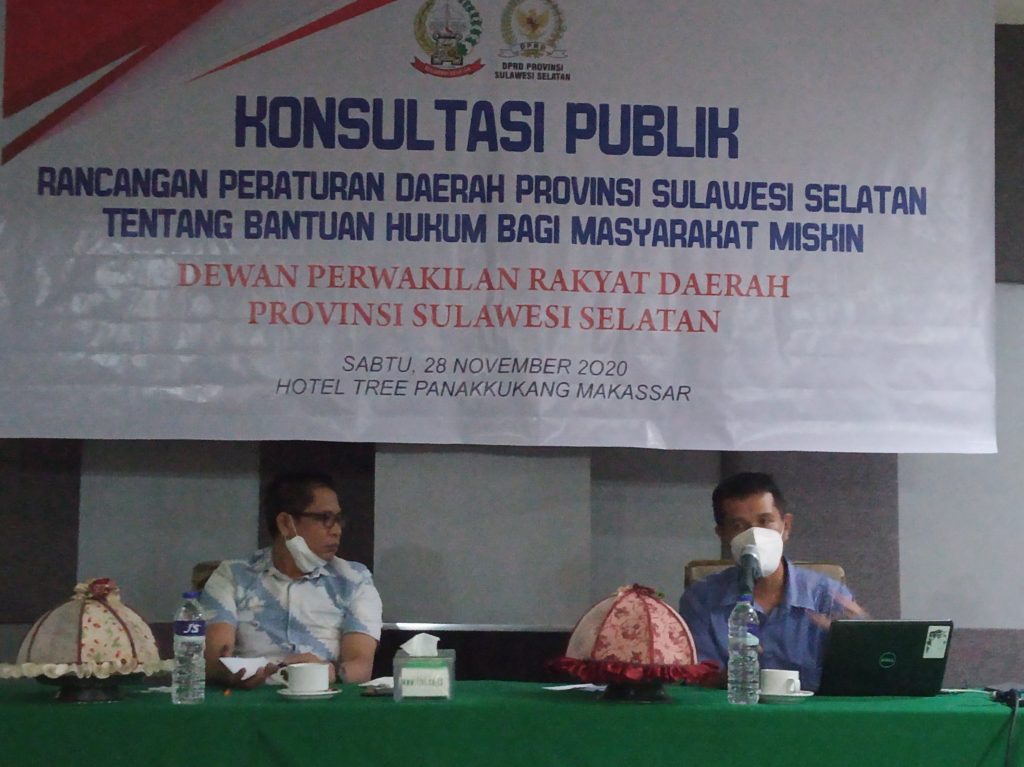 Dewan Perwakilan Rakyat Daerah (DPRD) Provinsi Sulawesi Selatan (Sulsel) gelar Konsultasi Publik tentang Rancangan Peraturan Daerah (Perda) Provinsi Sulsel tentang Bantuan Hukum bagi Masyarakat Miskin yang bertempat di Hotel Tree Kota Makassar, pada 28 November 2020. Kegiatan ini dihadiri oleh Firmansyah sebagai moderator, Muhammad Haedir, S.H (Direktur LBH Makassar). dan Andi Alfattah, S.H., M.H. (Biro […]
